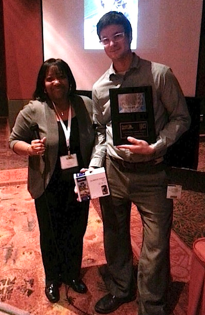 Anita Socci of JPCL presented a plaque to Anthony Schoenecker, winner of Paint BidTracker's photo contest.